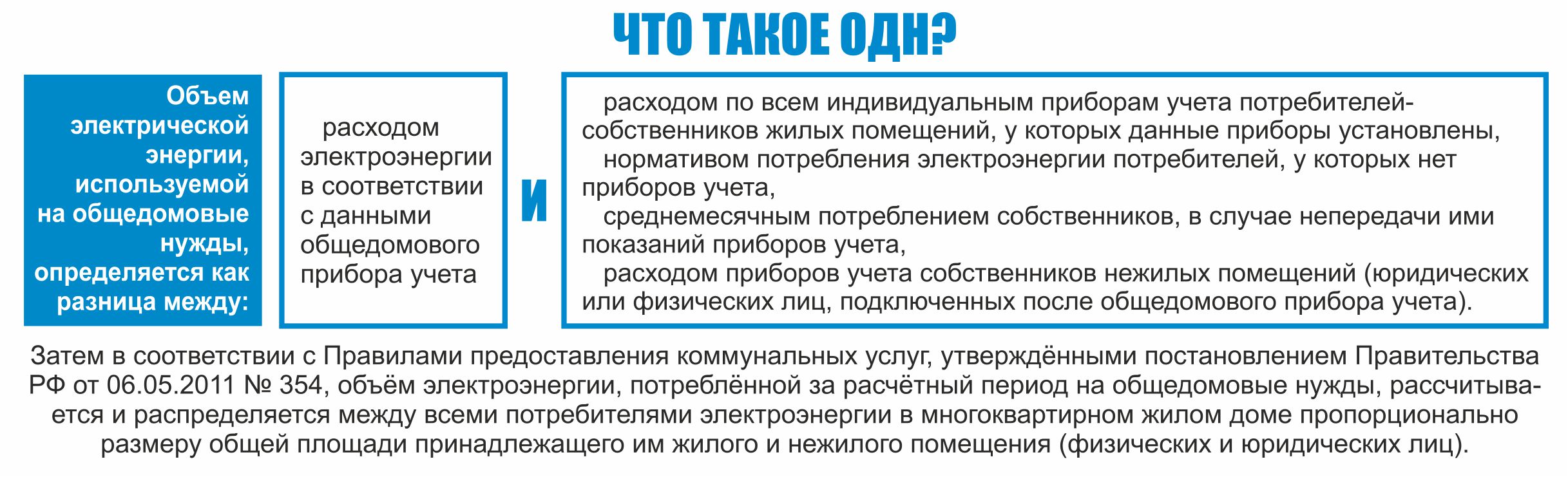 Однако стоит понимать, что ОДН - это не только объемы электроэнергии, затраченные «на лампочки в подъезде». В соответствии с формулами начисления разницу между объемом общедомового и индивидуального потребления, а соответственно объем ОДН, могут увеличить такие факторы, как занижение показаний индивидуальных приборов учёта отдельными жильцами, ошибки при снятии и передаче показаний, несинхронное снятие показаний индивидуальных и общедомовых приборов учета и т.д. Как видим, эти факторы так или иначе связаны с индивидуальным потреблением жителей многоквартирного дома, а поэтому величина ОДН во многом зависит от активного желания жильцов дома проводить мероприятия по ее контролю и снижению.