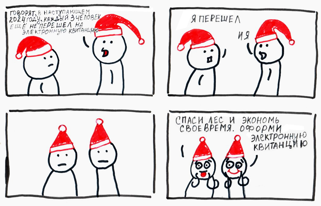 Накануне Дня энергетика и Нового года энергосбытовая организация объявила конкурс рисунков среди детей своих сотрудников. Его итоги показали как художественные способности ребят, так и глубокую степень вовлеченности в профессиональные обязанности своих пап и мам. Одна из номинаций творческого конкурса – «Новый год – на электронную квитанцию переход» предлагала рассказать и показать преимущества электронной квитанции перед бумажной. Дети придумали не только рисунки, но и мемы, мини-комиксы и даже короткий рассказ в форме киноплёнки.